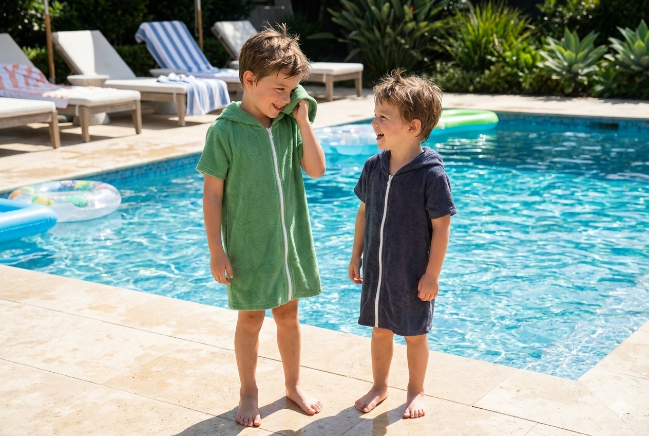 Nuestra salida de baño es la pieza esencial que no puede faltar en el bolso de playa de tus hijos. Olvídate de las toallas que se caen o incomodan: este diseño con cierre completo permite que nuestros niños se vistan en segundos, asegurando un calce perfecto para jugar cómodamente todo el día sin interrupciones.